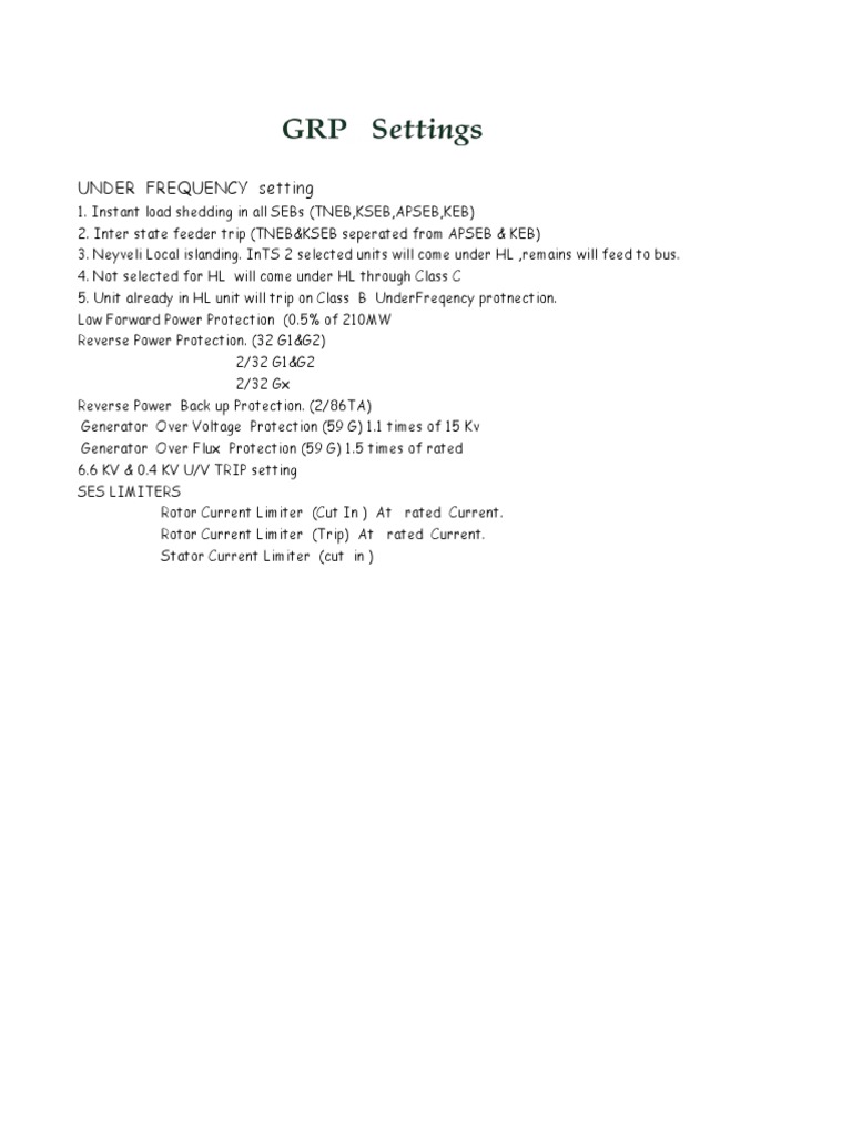 5. Unit already in HL unit will trip on Class B UnderFreqency protnection.