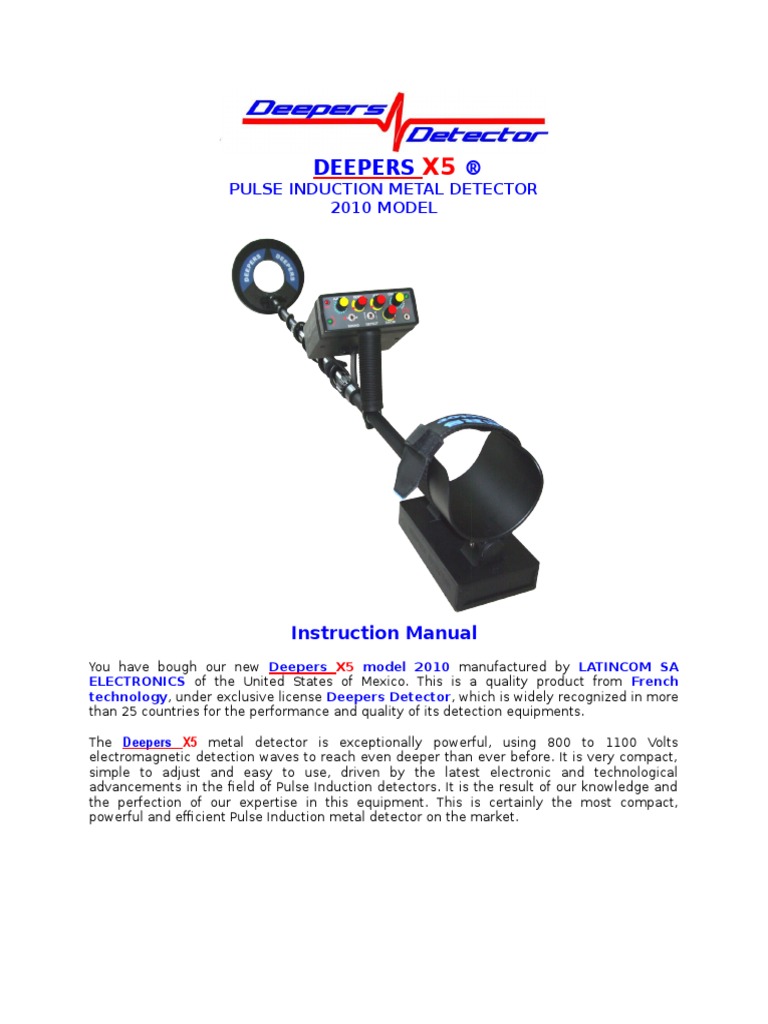 Note: The Latincom-Mex SA manufacturer under exclusive license from Deepers Detectors
