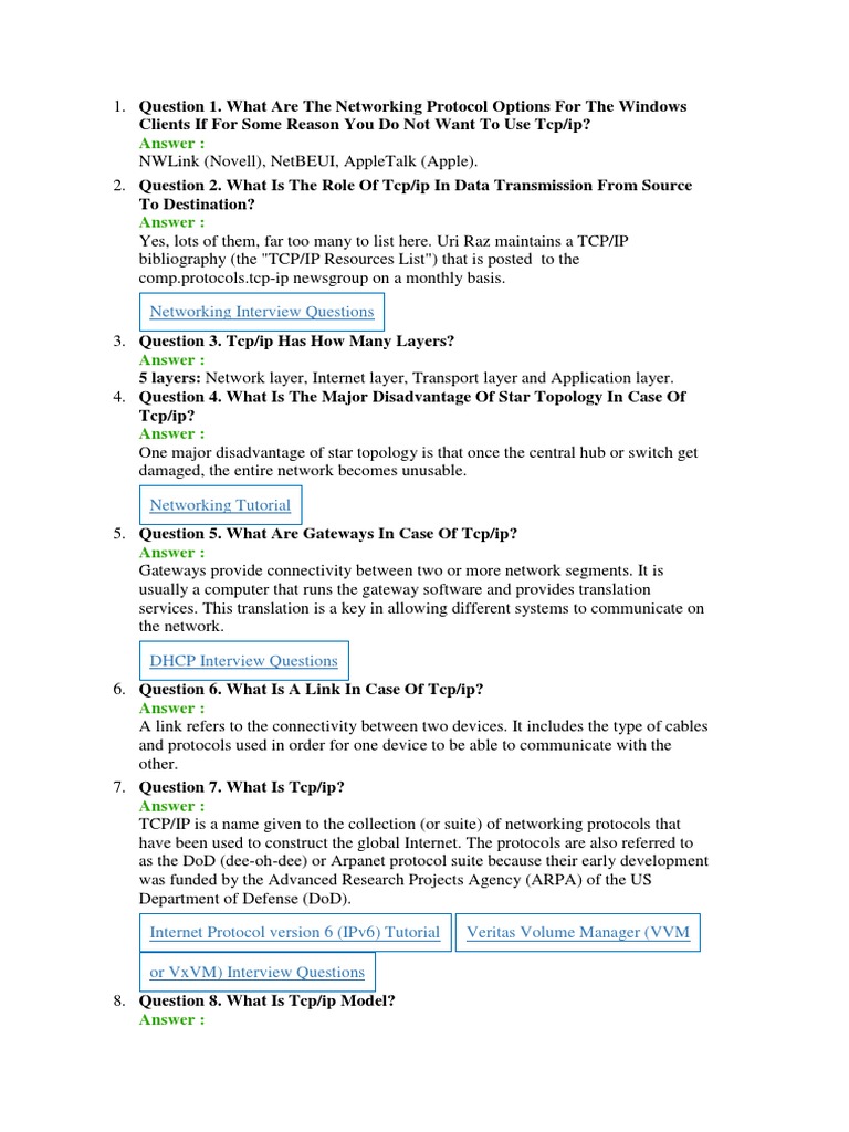 19. Question 19. Mention One Real Place To Use Tcp/ip?