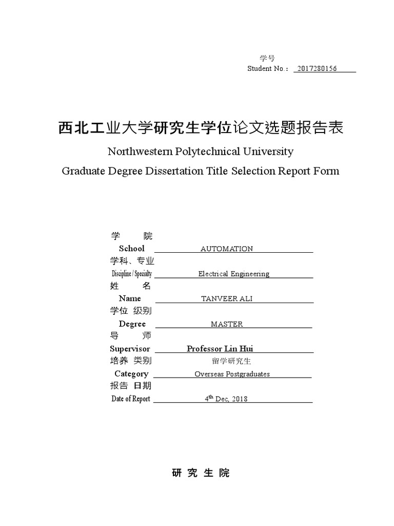 五、研究生在规定的时间内,写出选题报告初稿,经指导教师审阅同意后,由指导教师