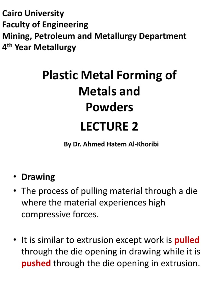 1. Drawing Force = F = Y̅f Af ln (Ao/Af).