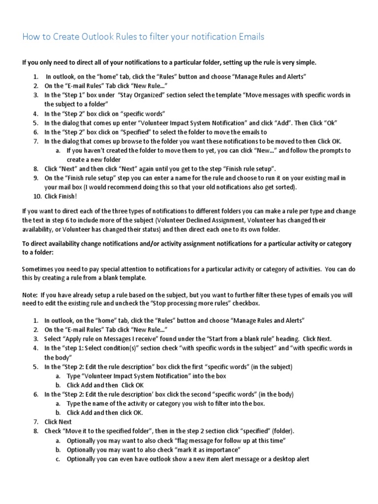 How to Create Outlook Rules to filter your notification Emails