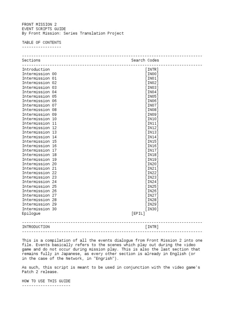 This is a compilation of all the events dialogue from Front Mission 2 into one