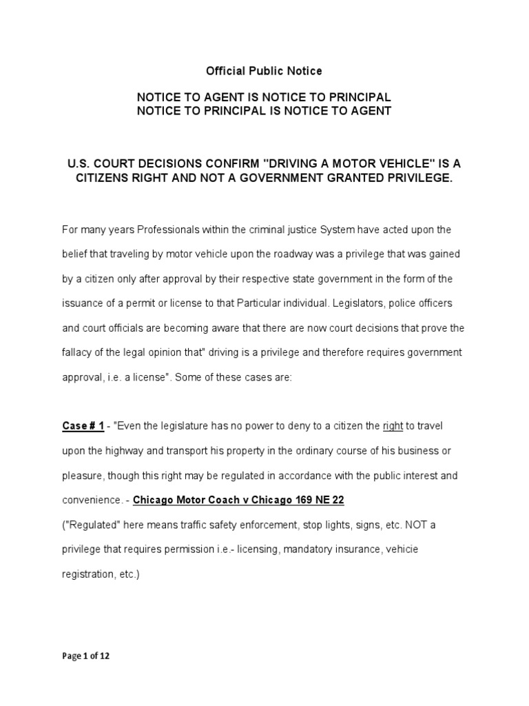 Case # 2 - "The right of the citizen to travel upon the public highways and to transport