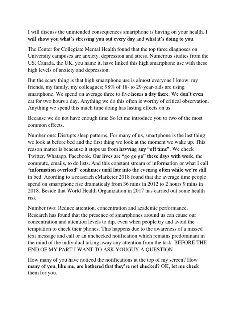 I will discuss the unintended consequences smartphone is having on your health.