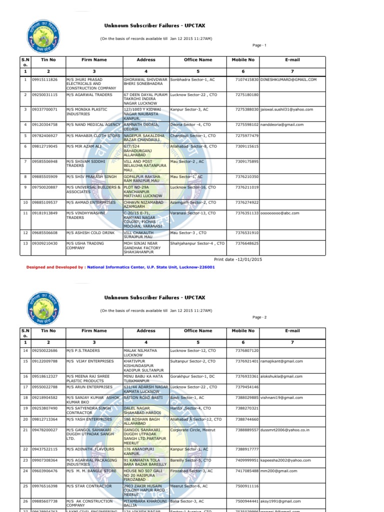 Designed and Developed by : National Informatics Center, U.P. State Unit, Lucknow-226001