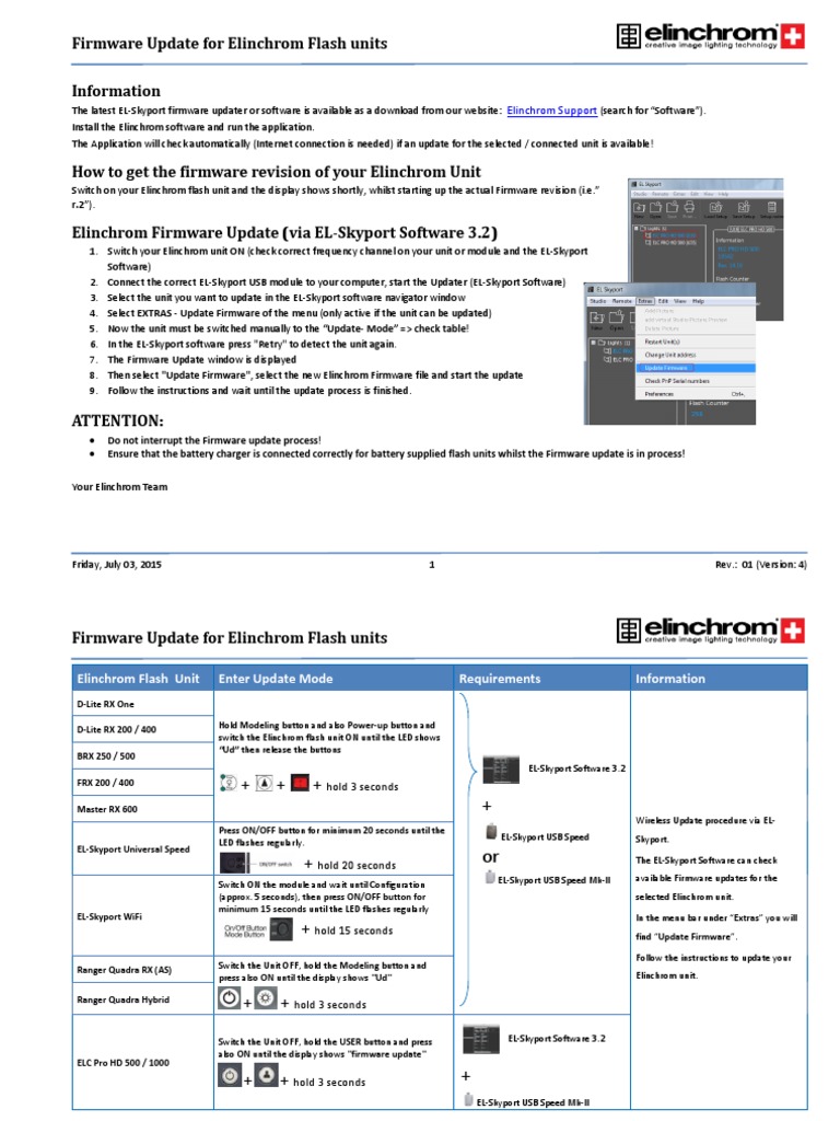 Elinchrom Flash Unit Enter Update Mode Requirements Information
