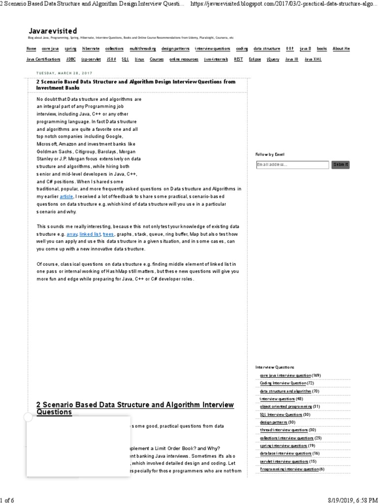2 Scenario Based Data Structure and Algorithm Design Interview Questi... https://javarevisited.blogspot.com/2017/03/2-practical-data-structure-algo...