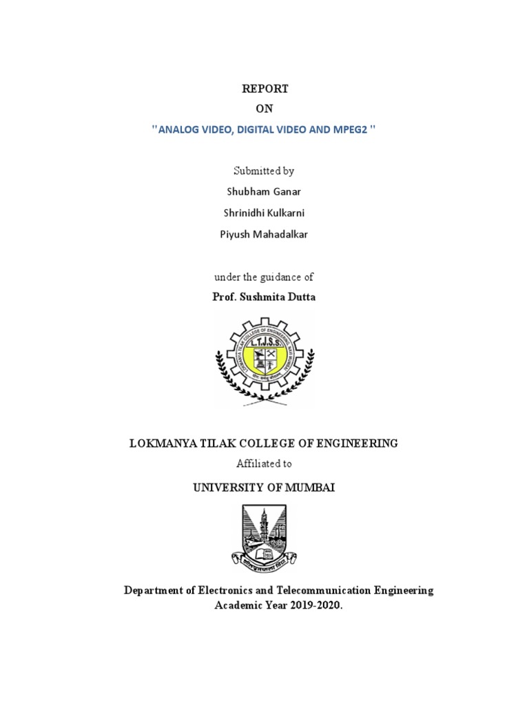 "ANALOG VIDEO, DIGITAL VIDEO AND MPEG2 "