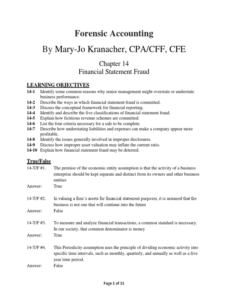 14-T/F #14. Financial statement frauds can be broken down into five distinct categories: