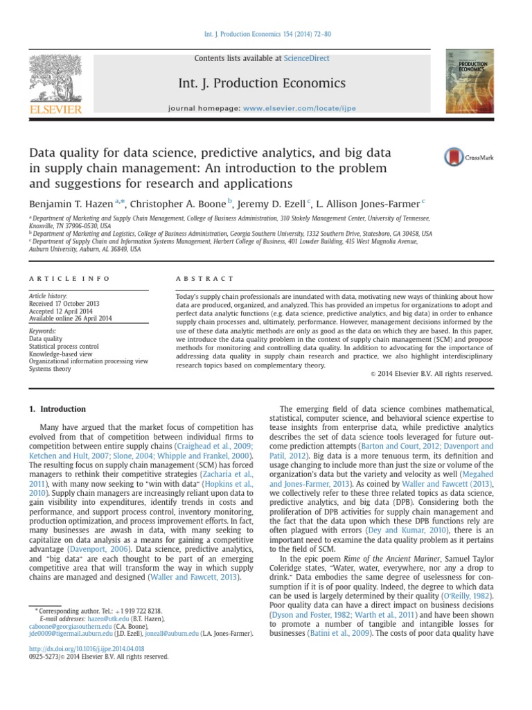 Knowledge-based view addressing data quality in supply chain research and practice, we also highlight interdisciplinary