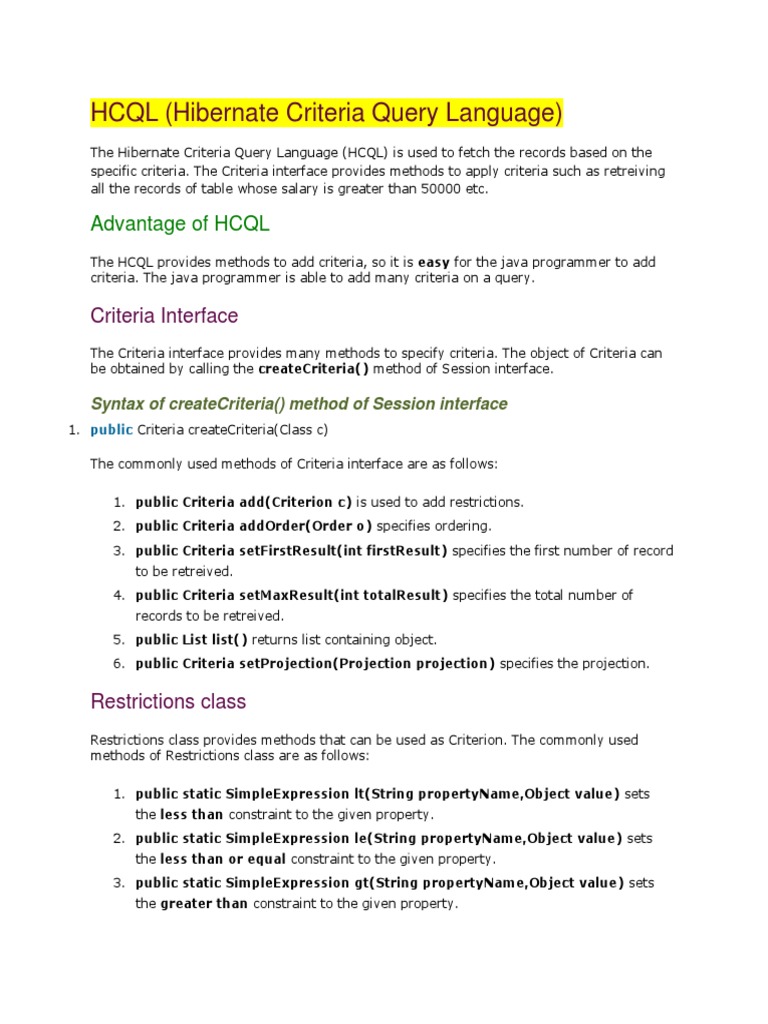 1. Crietria c=session.createCriteria(Emp.class); //passing Class class argument