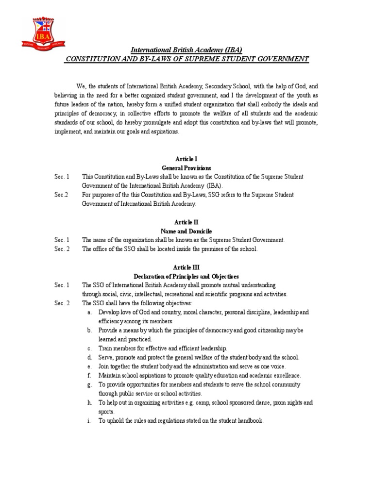 Sec. 1 The SSG of International British Academy shall promote mutual understanding