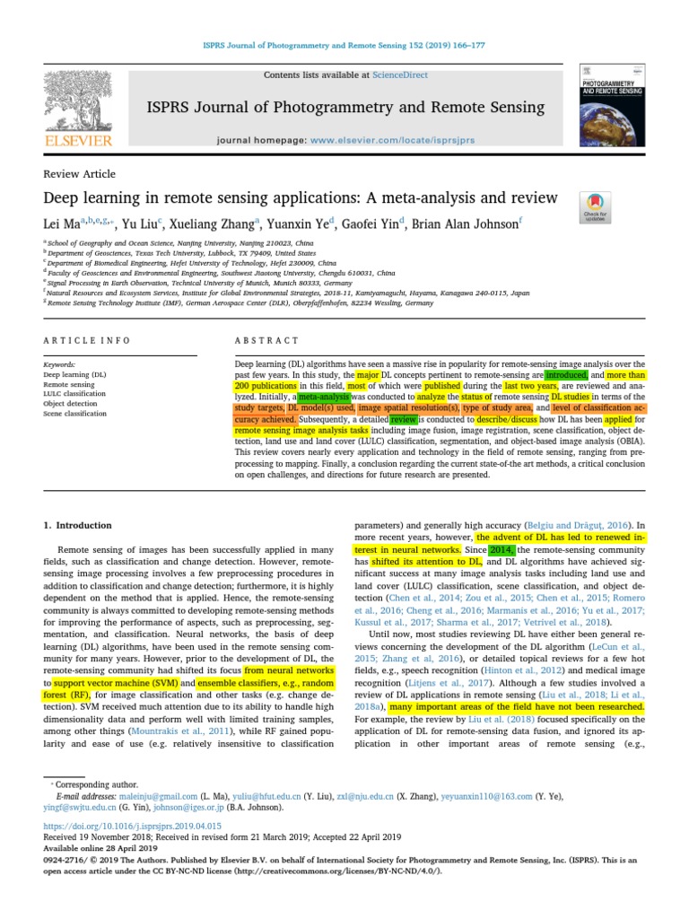 learning (DL) algorithms, have been used in the remote sensing com- views concerning the development of the DL algorithm (LeCun et al.,