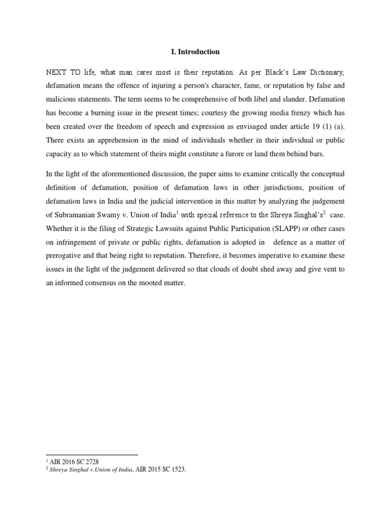 of Subramanian Swamy v. Union of India1 with special reference to the Shreya Singhal’s2 case.