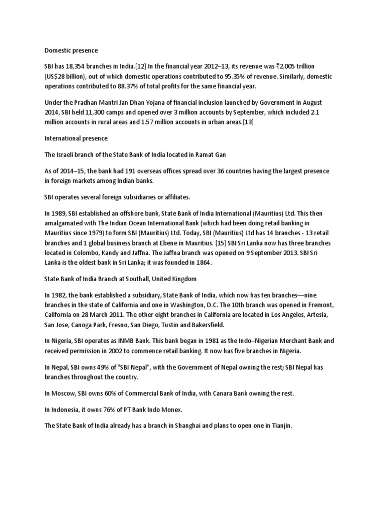 As of 2014–15, the bank had 191 overseas offices spread over 36 countries having the largest presence