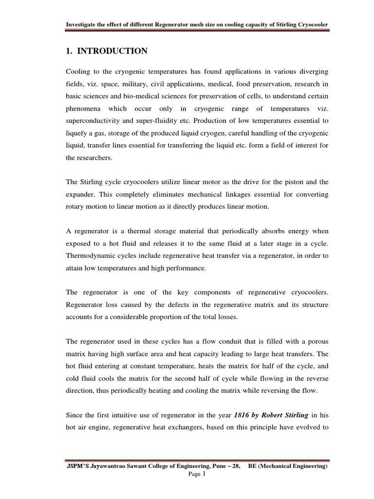 1. “Design and optimization of cryogenic regenerators” by B. Jayaraman, Indian