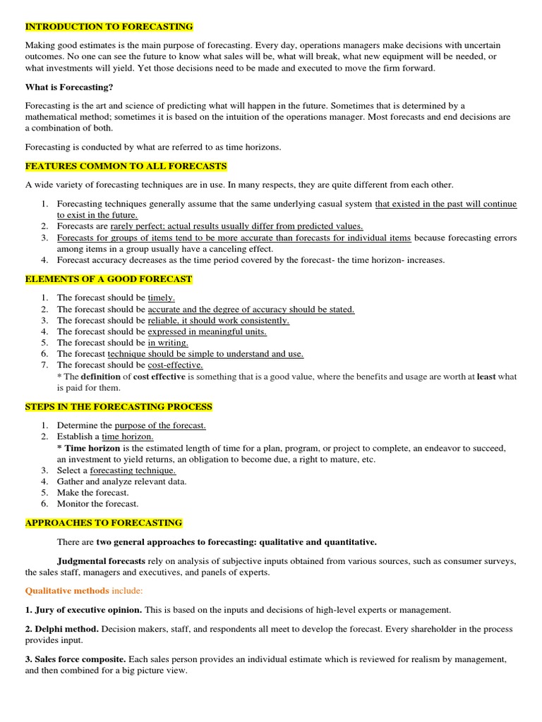 Making good estimates is the main purpose of forecasting. Every day, operations managers make decisions with uncertain