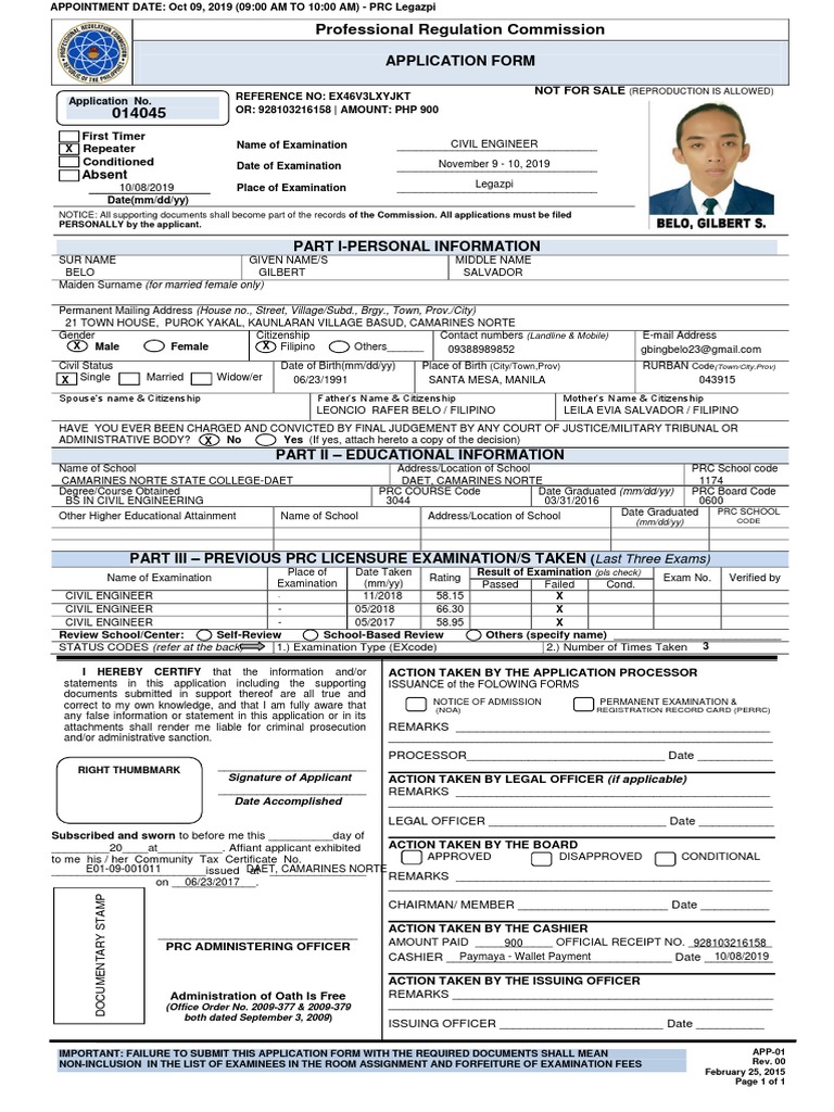 APPOINTMENT DATE: Oct 09, 2019 (09:00 AM TO 10:00 AM) - PRC Legazpi