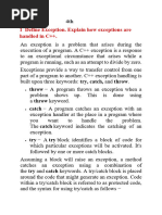 Throw : When an exception occur in try block, it is thrown to the catch block using