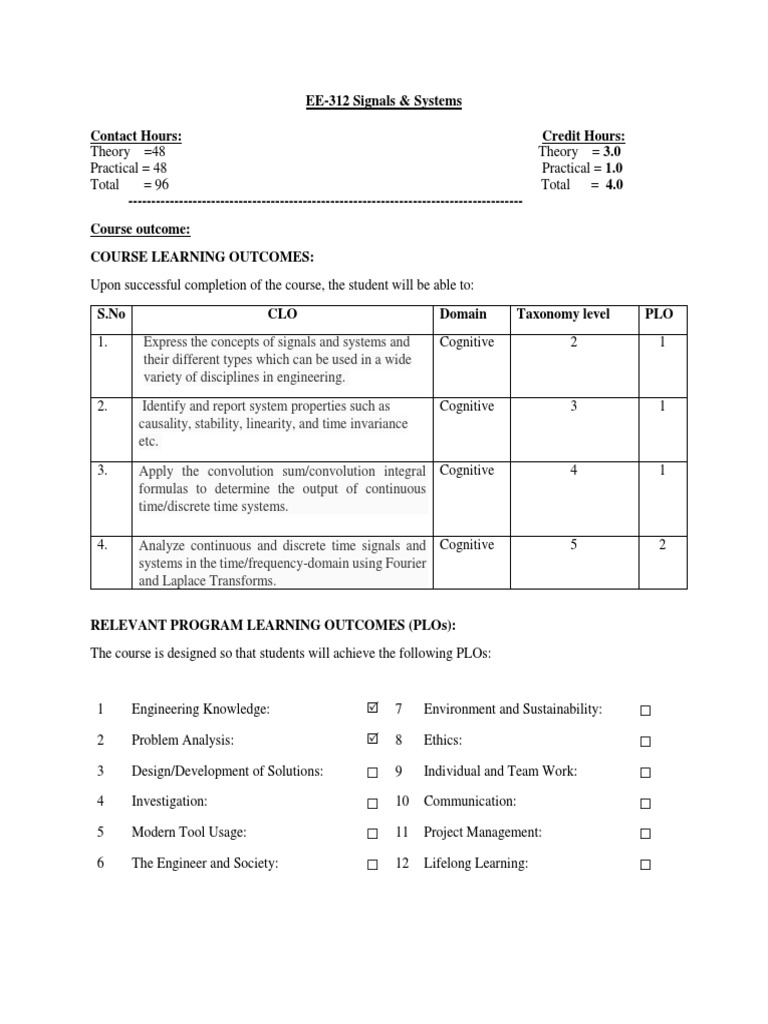 4. Analyze continuous and discrete time signals and Cognitive 5 2