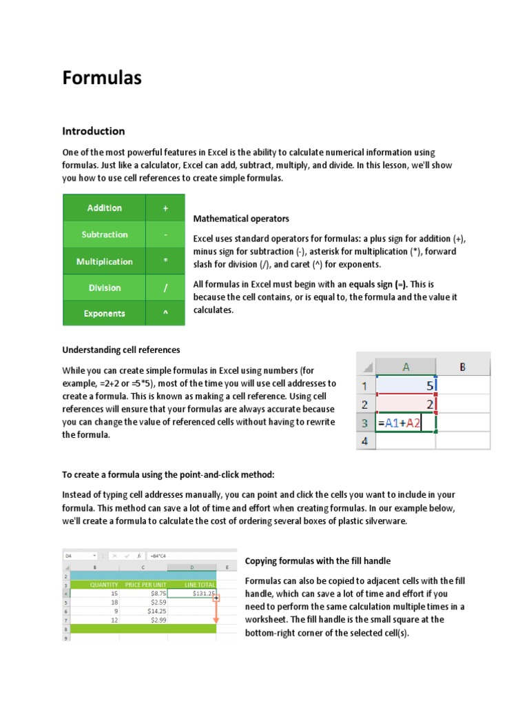 formulas. Just like a calculator, Excel can add, subtract, multiply, and divide. In this lesson, we'll show