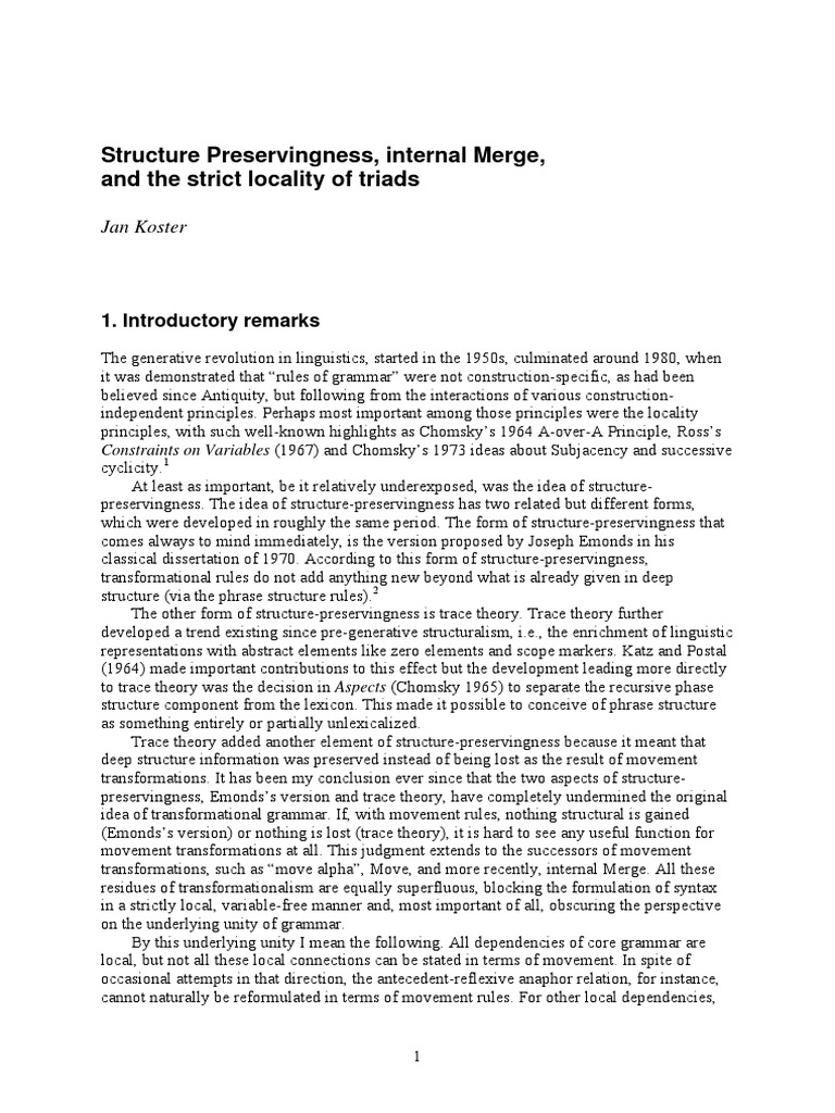 Koster, Jan. 1993. Structure-Preservingness and the End of Transformationalism. In: A. de