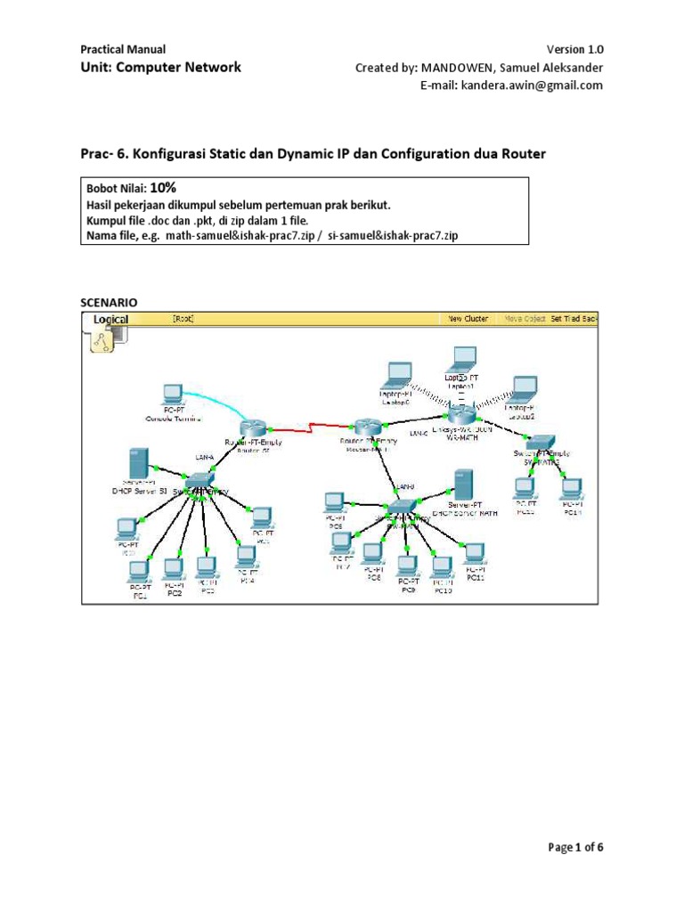 Prac- 6. Konfigurasi Static dan Dynamic IP dan Configuration dua Router