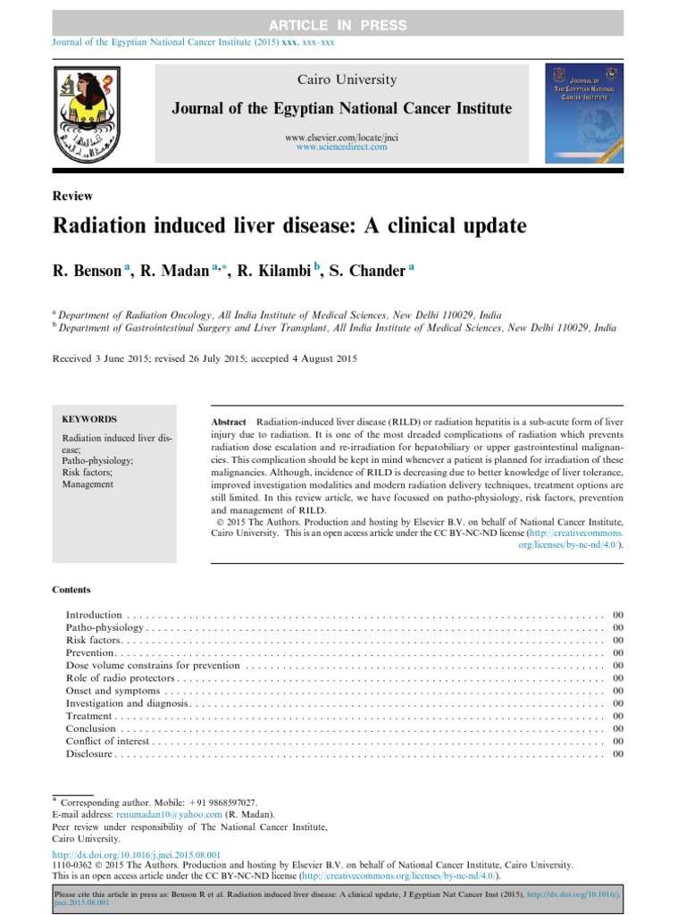 Please cite this article in press as: Benson R et al. Radiation induced liver disease: A clinical update, J Egyptian Nat Cancer Inst (2015), http://dx.doi.org/10.1016/j.