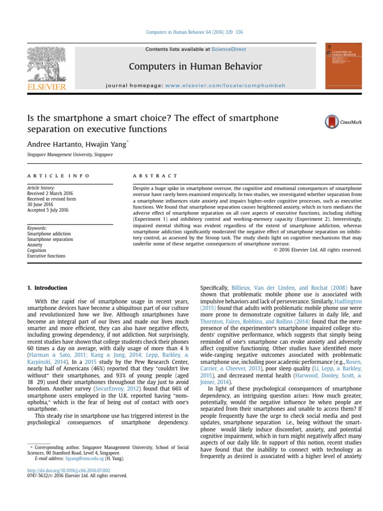 Article history: Despite a huge spike in smartphone overuse, the cognitive and emotional consequences of smartphone