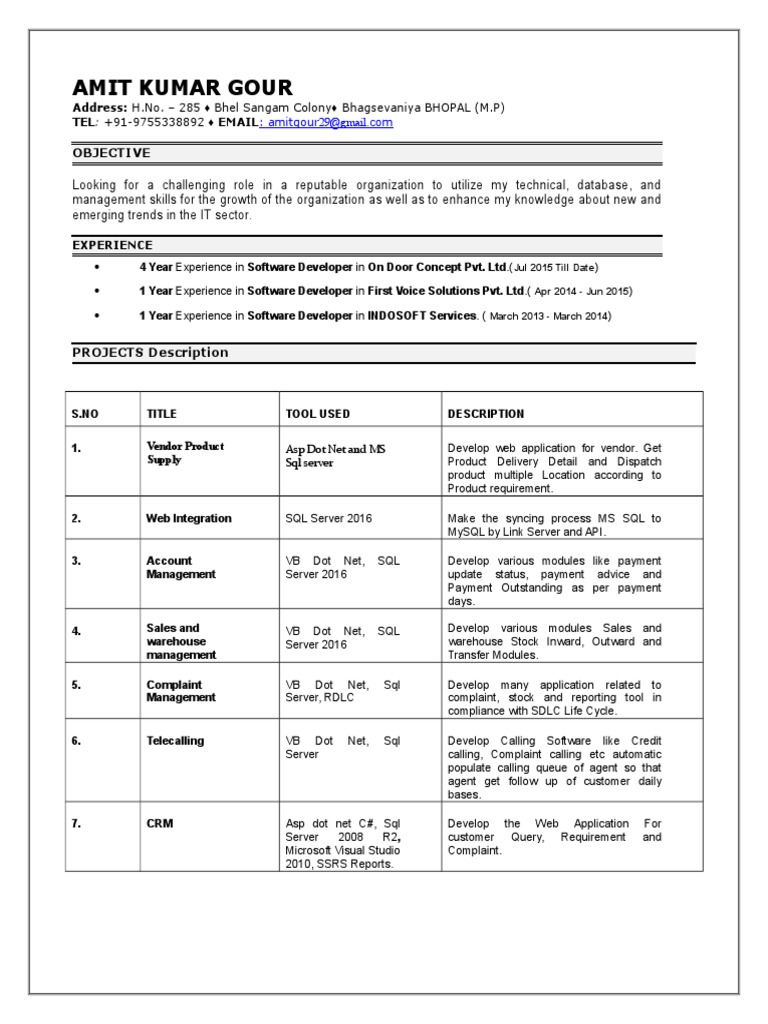 TEL: +91-9755338892 ♦ EMAIL: amitgour29@gmail.com