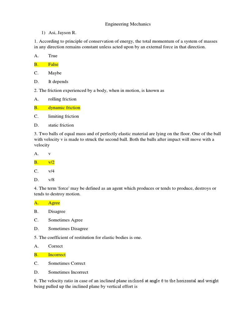 1. According to principle of conservation of energy, the total momentum of a system of masses
