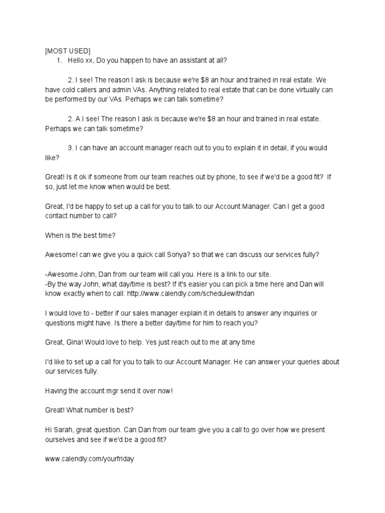 -It depends on the project at hand. We have cold callers and admin VAs. We could call your