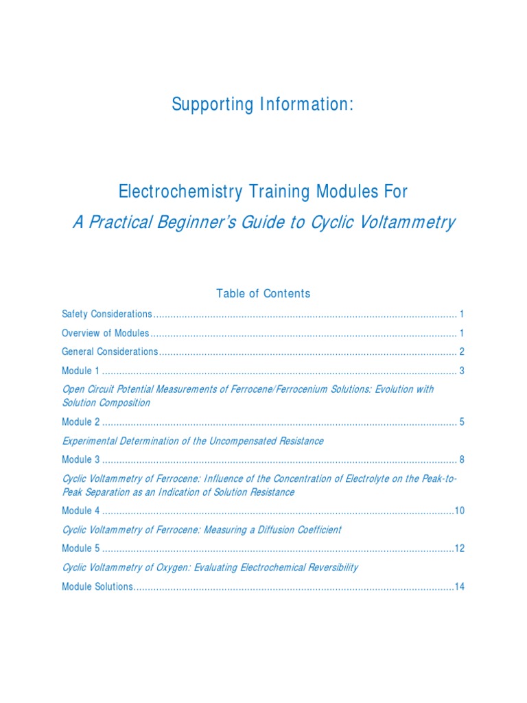 1 Electrochemistry Training Modules For A Practical Beginner’s Guide to Cyclic Voltammetry