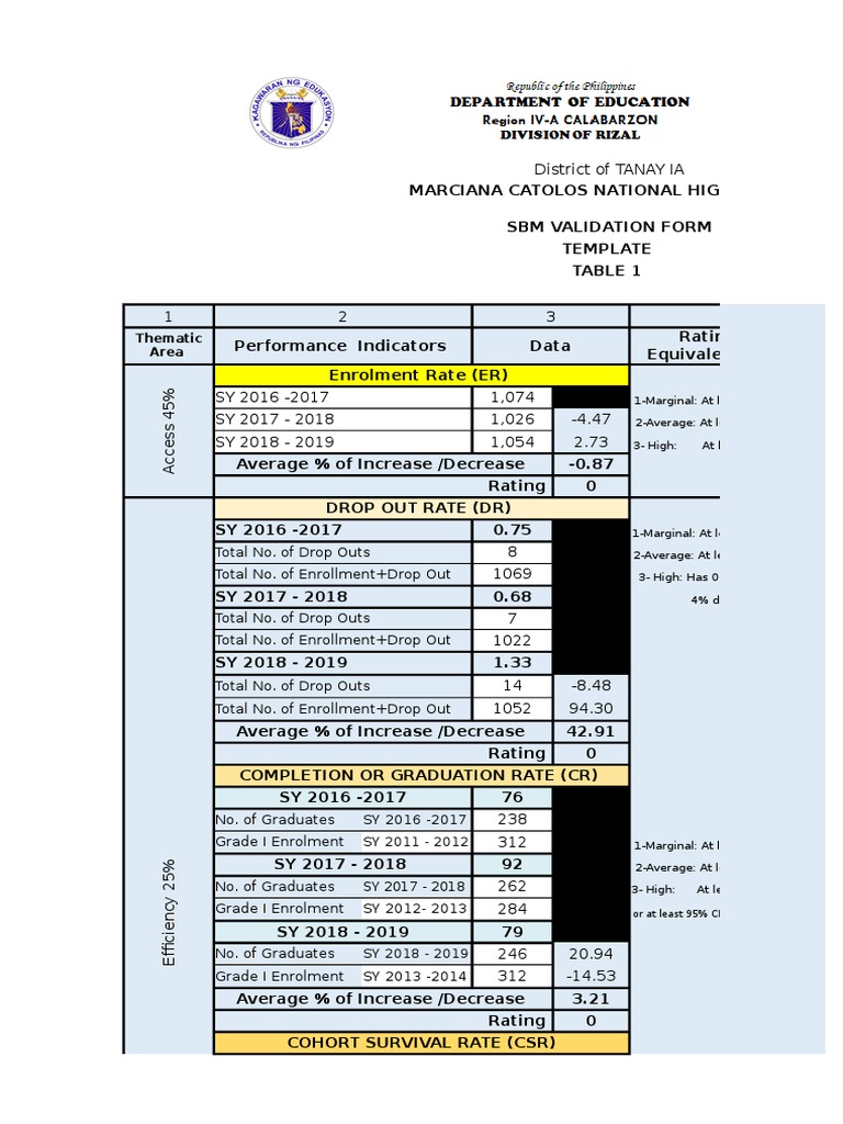 *Note: For the School Validation (Evaluated by the SBM Coordinator, Checked & Verified by the School M&E Coord