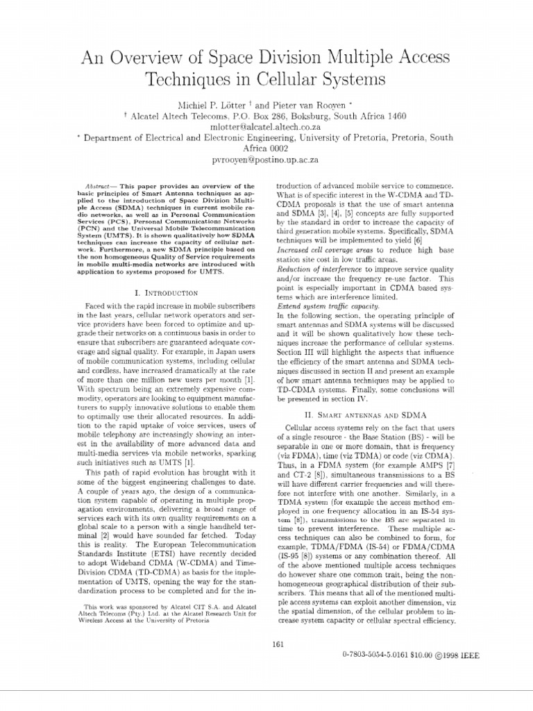 Wireless Access at t h e University of Pretoria crease system capacity or cellular spectral efficiency.
