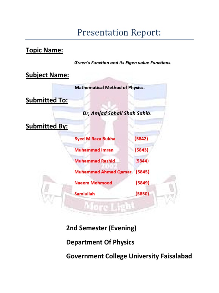 Let us further suppose that none of the λ n is zero. Then the Green function