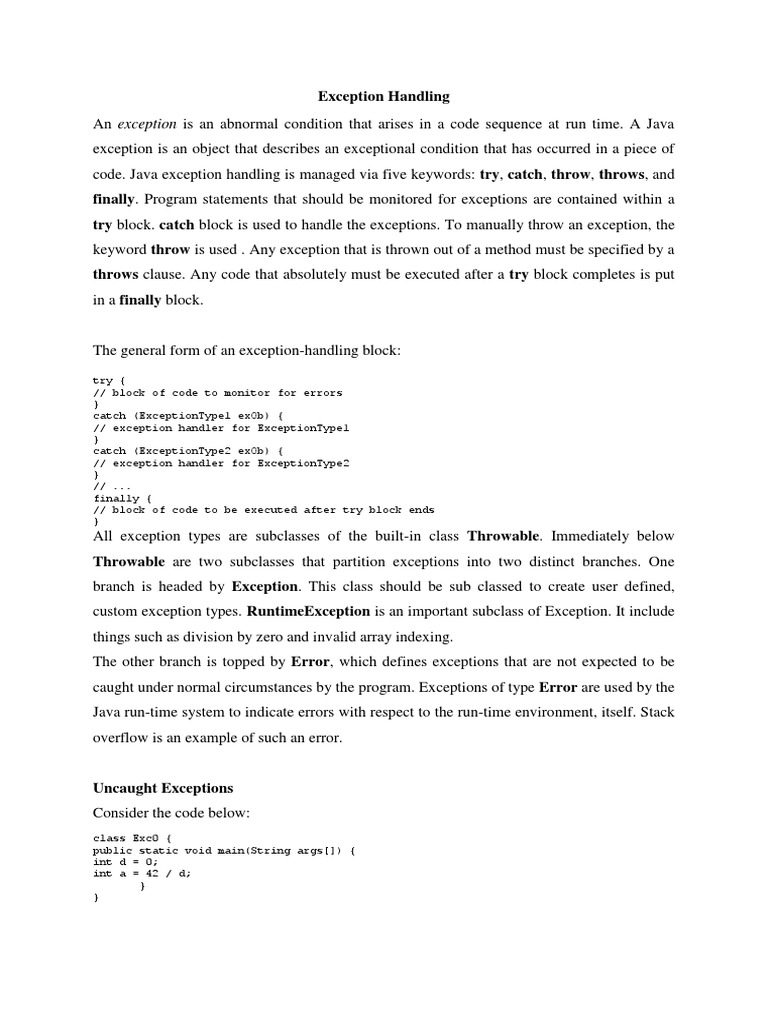 handler provided by the Java run-time system. Any exception that is not caught by the