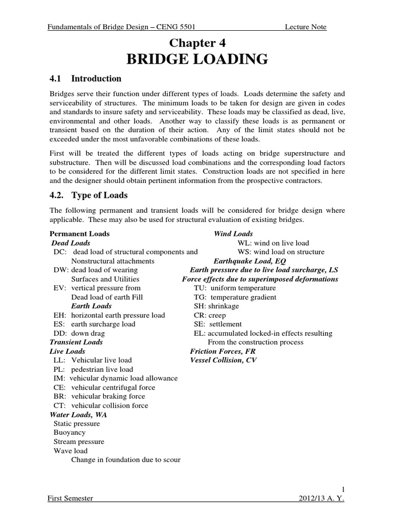The design of all bridge structural elements is based on a set of loading conditions which the