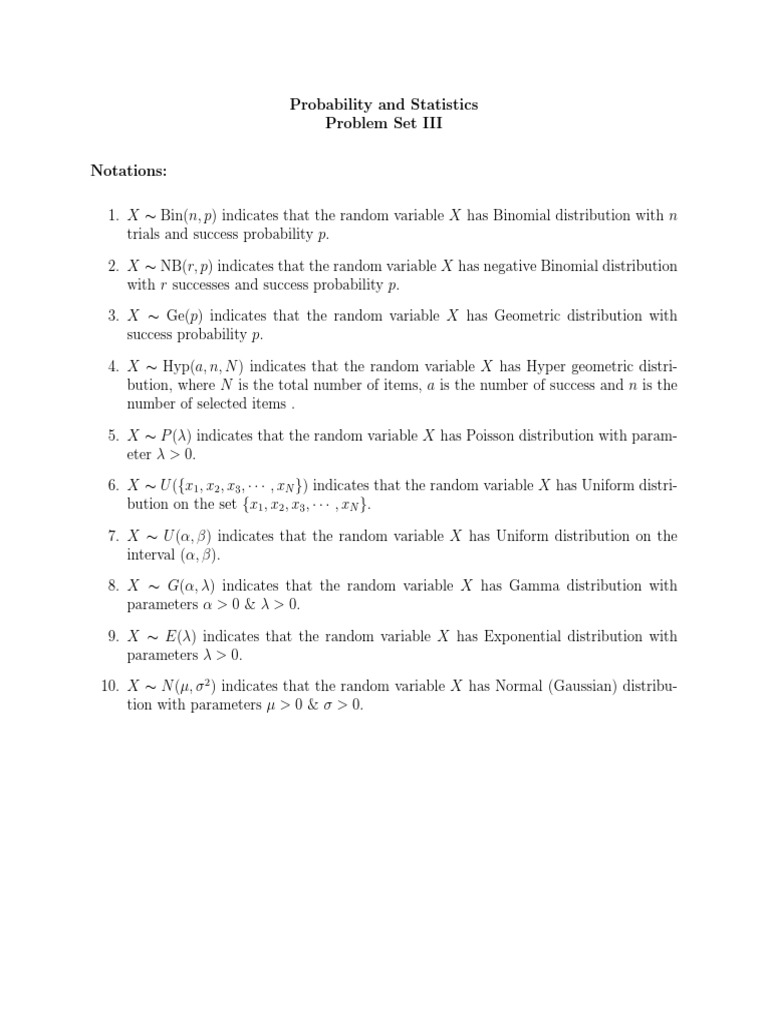 4. X ∼ Hyp(a, n, N ) indicates that the random variable X has Hyper geometric distri-