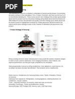 (Product, Price, Place, Promotion) and explains the Samsung marketing