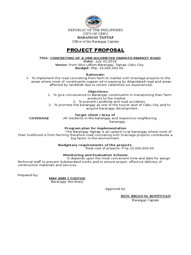 Title: CONCRETING OF A ONE-KILOMETER FARM-TO-MARKET ROAD
