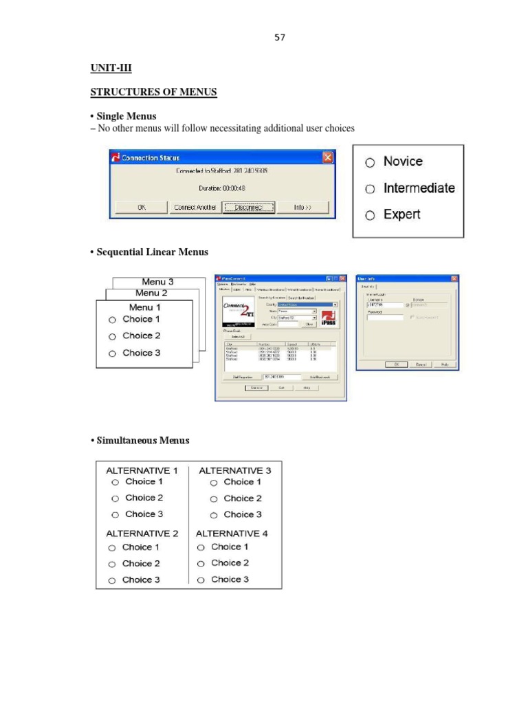 only appropriate depending upon a previous menu selection, a hierarchical structure is the