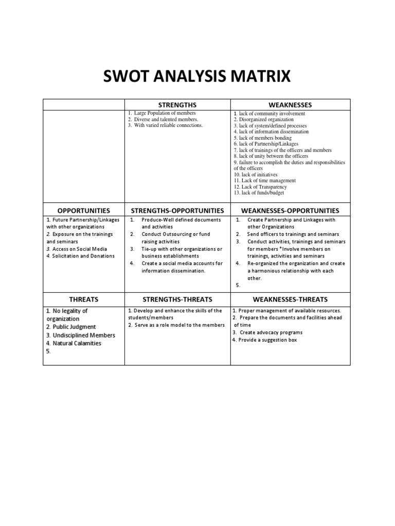 OPPORTUNITIES STRENGTHS-OPPORTUNITIES WEAKNESSES-OPPORTUNITIES