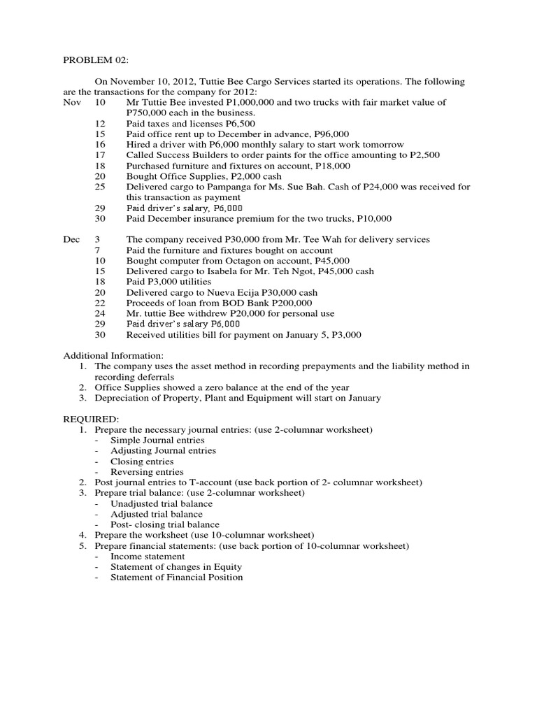 1. Prepare the necessary journal entries: (use 2-columnar worksheet)