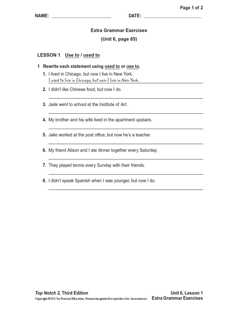 Copyright ©2015 by Pearson Education. Permission granted to reproduce for classroom use. Extra Grammar Exercises
