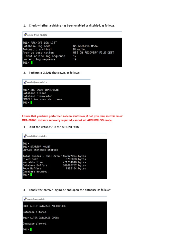 ORA-00265: instance recovery required, cannot set ARCHIVELOG mode.