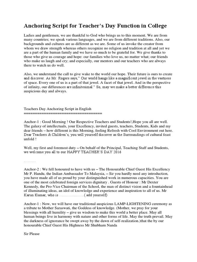 Anchor-2 : Next, I would like to call upon our respected Principal, the sculptor of human