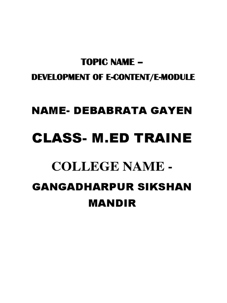 DEVELOPMENT OF E-CONTENT/E-MODULE