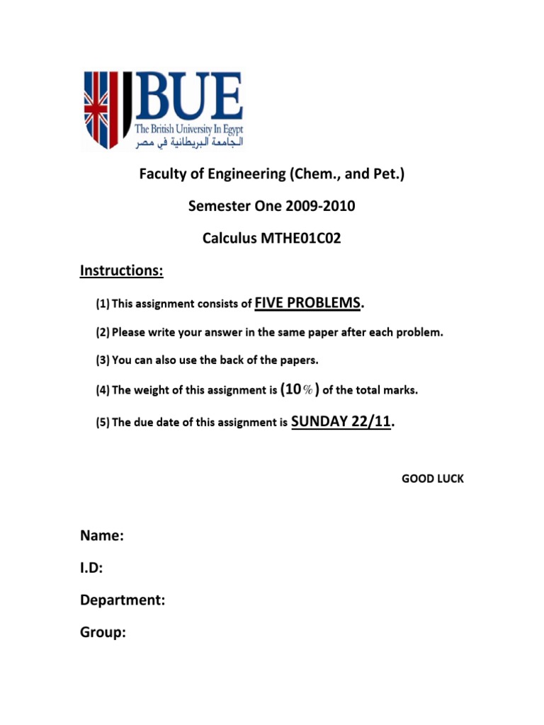 (4) The weight of this assignment is (10 % ) of the total marks.